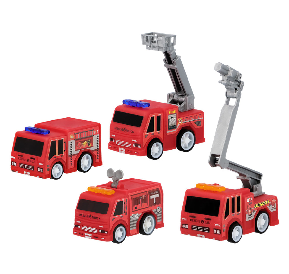 -Een kleine brandweerauto (pull-back) geleverd in vier verschillende varianten.
