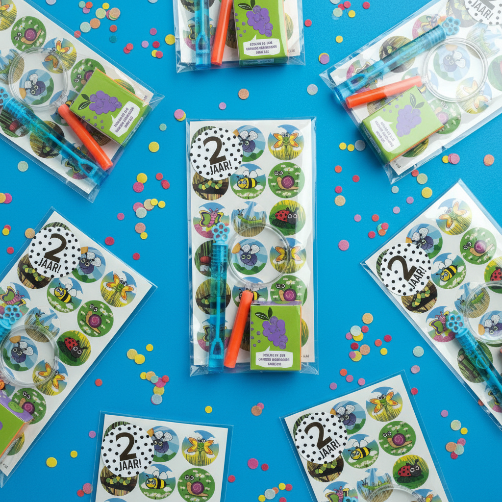 De traktatie wordt netjes ingepakt in cellofaan en voorzien van een sticker naar keuze!
