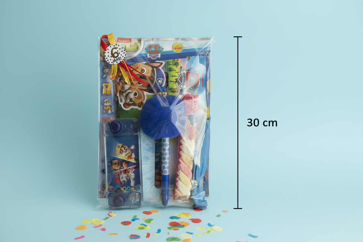 Deze unieke traktatie van a4 formaat zit boordevol Paw Patrol spulletjes! Geef dit leuke cadeaupakket bij een kinderfeestje of verwen je zoon of dochter met dit leuke kant-en-klare pakket voor zijn of haar verjaardag.